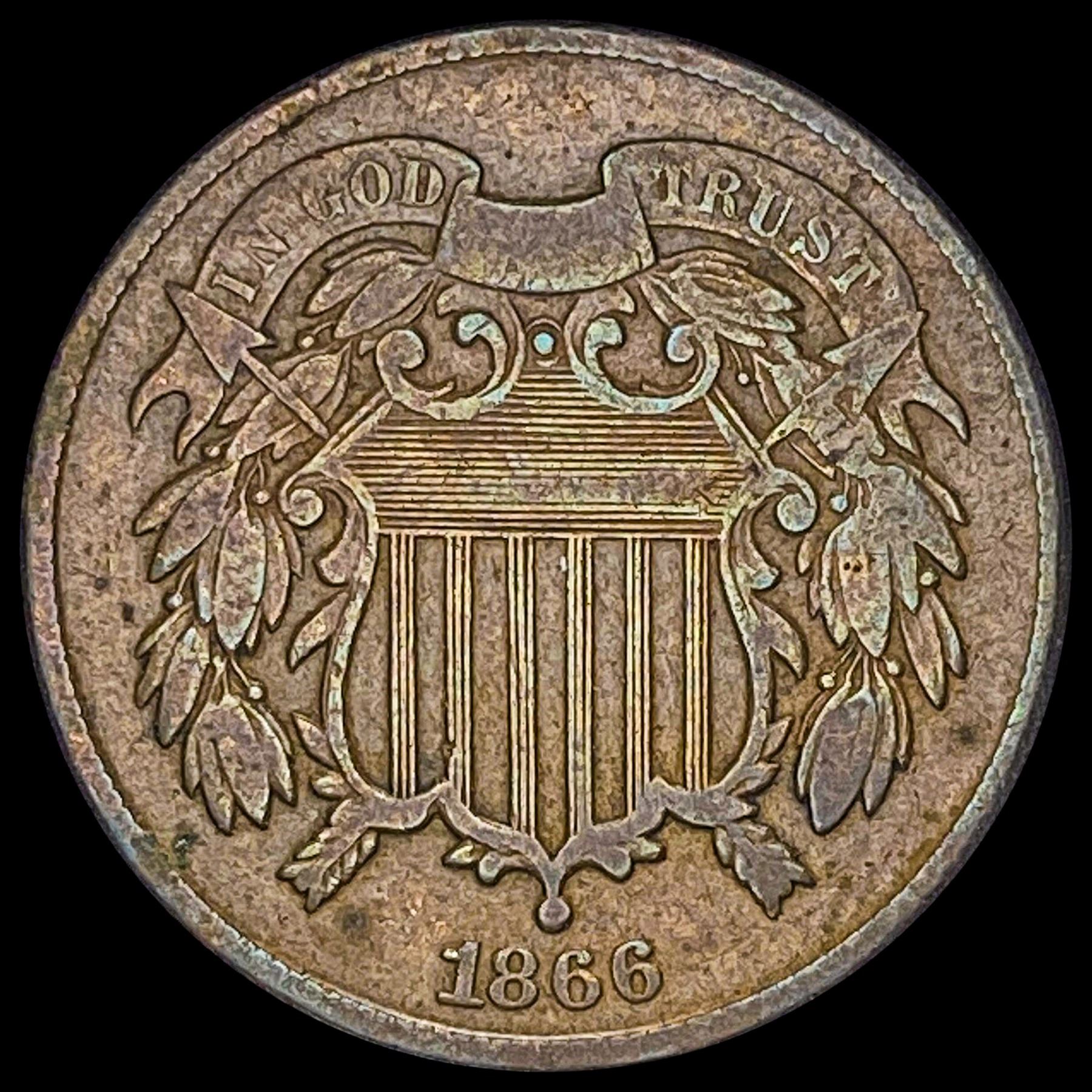 1866 Bronze Two-Cent Piece NEARLY UNCIRCULATED