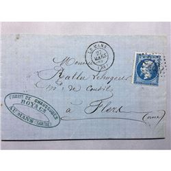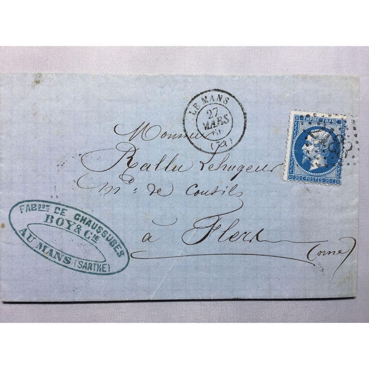 1866 Flers De L'orne stamped original iron gall handwritten letter and envelope now in a protective sleeve with a 20 C Emmpire Franc postes stamp.