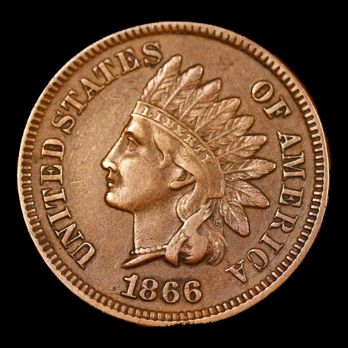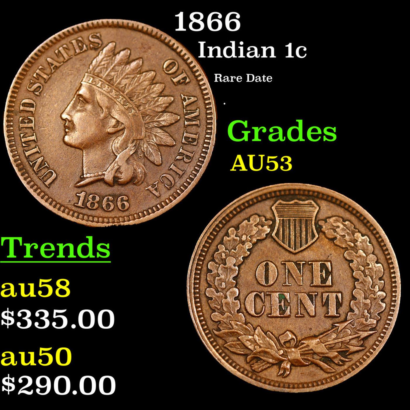 1866 Indian Cent 1c Grades Select AU. According to David Hall from PCGS, 'The 1866, 1867, and 1868 Indian cents are of approximate equal rarity. All three are definitely rarer than the 1864 and 1865.