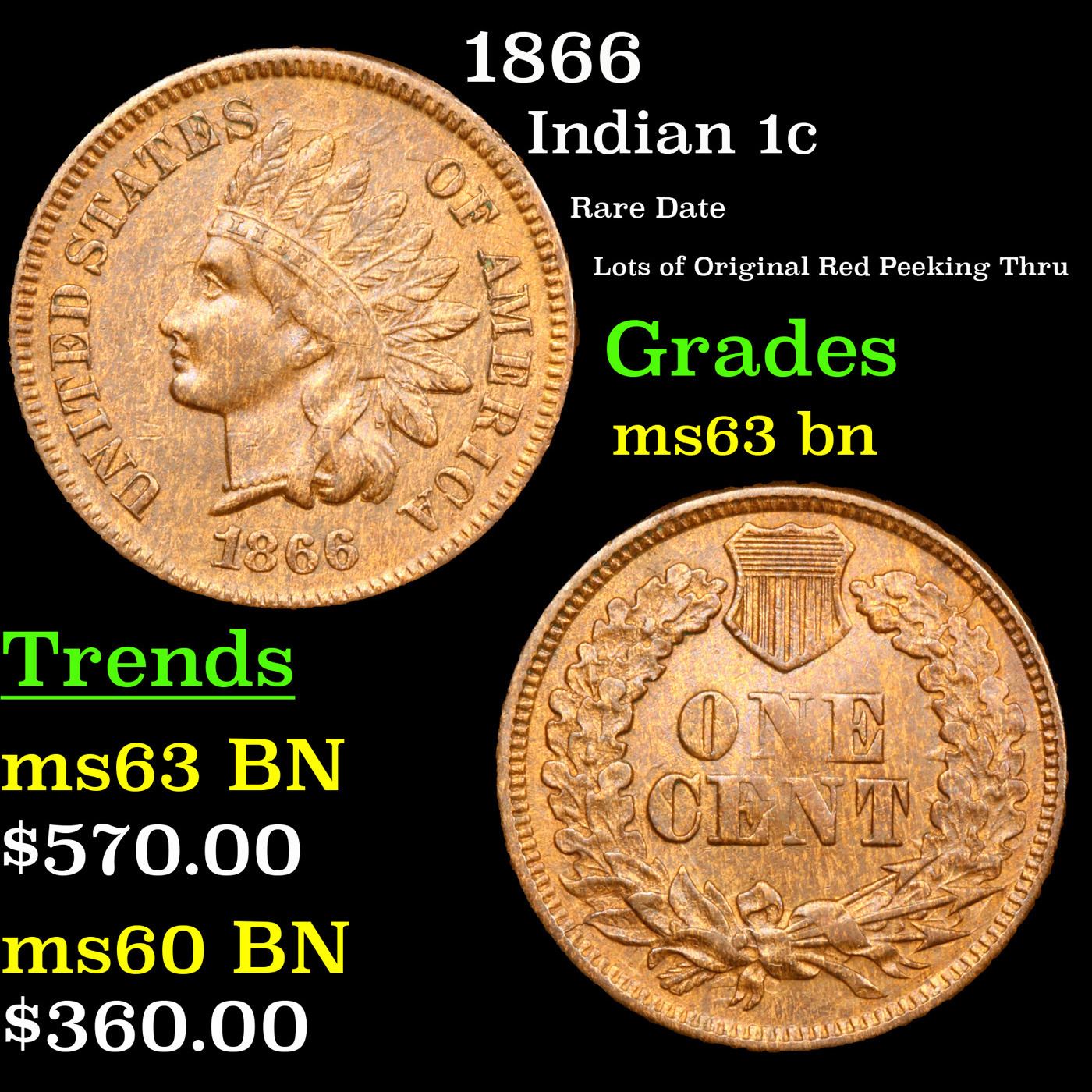 1866 Indian Cent 1c Grades Select Unc BN. According to David Hall from PCGS, 'The 1866, 1867, and 1868 Indian cents are of approximate equal rarity. All three are definitely rarer than the 1864 and 1865.