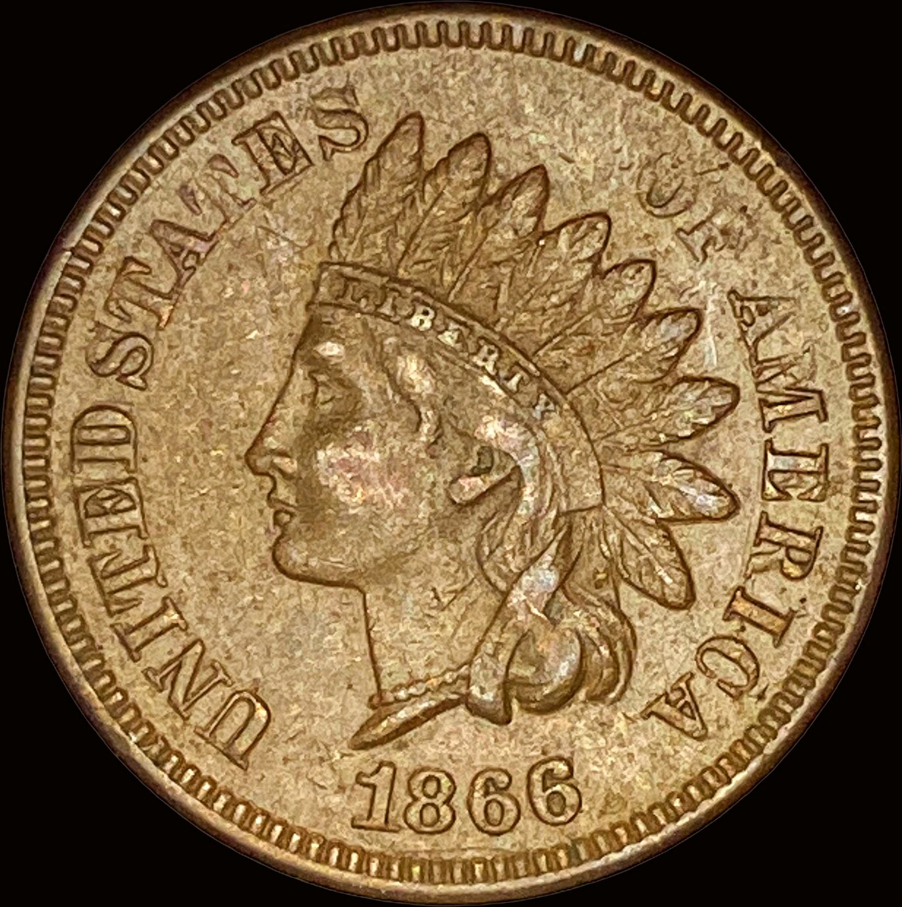 1866 Indian Head Cent ABOUT UNCIRCULATED