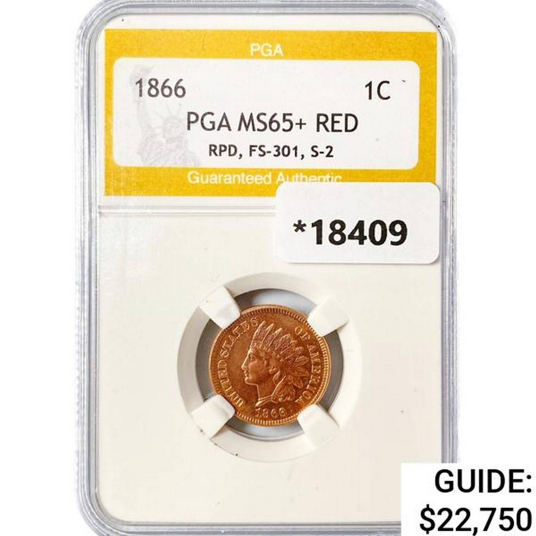 1866 Indian Head Cent PGA MS65+ RED, RPD, FS-301,