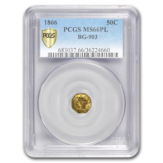 One piece 1866 Liberty Octagonal 50 Cent Gold MS-66 PL PCGS (BG-903)