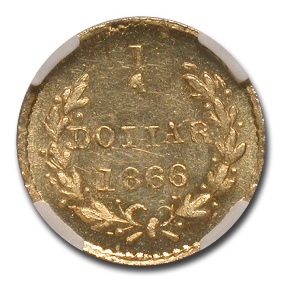 1866 Liberty Round 25 Cent Gold MS-64 NGC (PL, BG-804)
