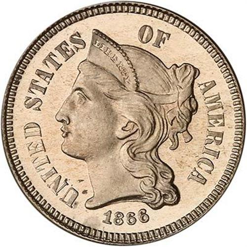 Beaming mirror bright nickel-gray surfaces with lightly frosted highlights. Bold hair and head details on Liberty including the line of beads or pearls along the top of her coronet. A truly beautiful gem specimen of a popular early Proof issue from our post-Civil War coinage era. Proof mintage was only 725. PCGS Pop: 4/6 (8/05) (#93762)