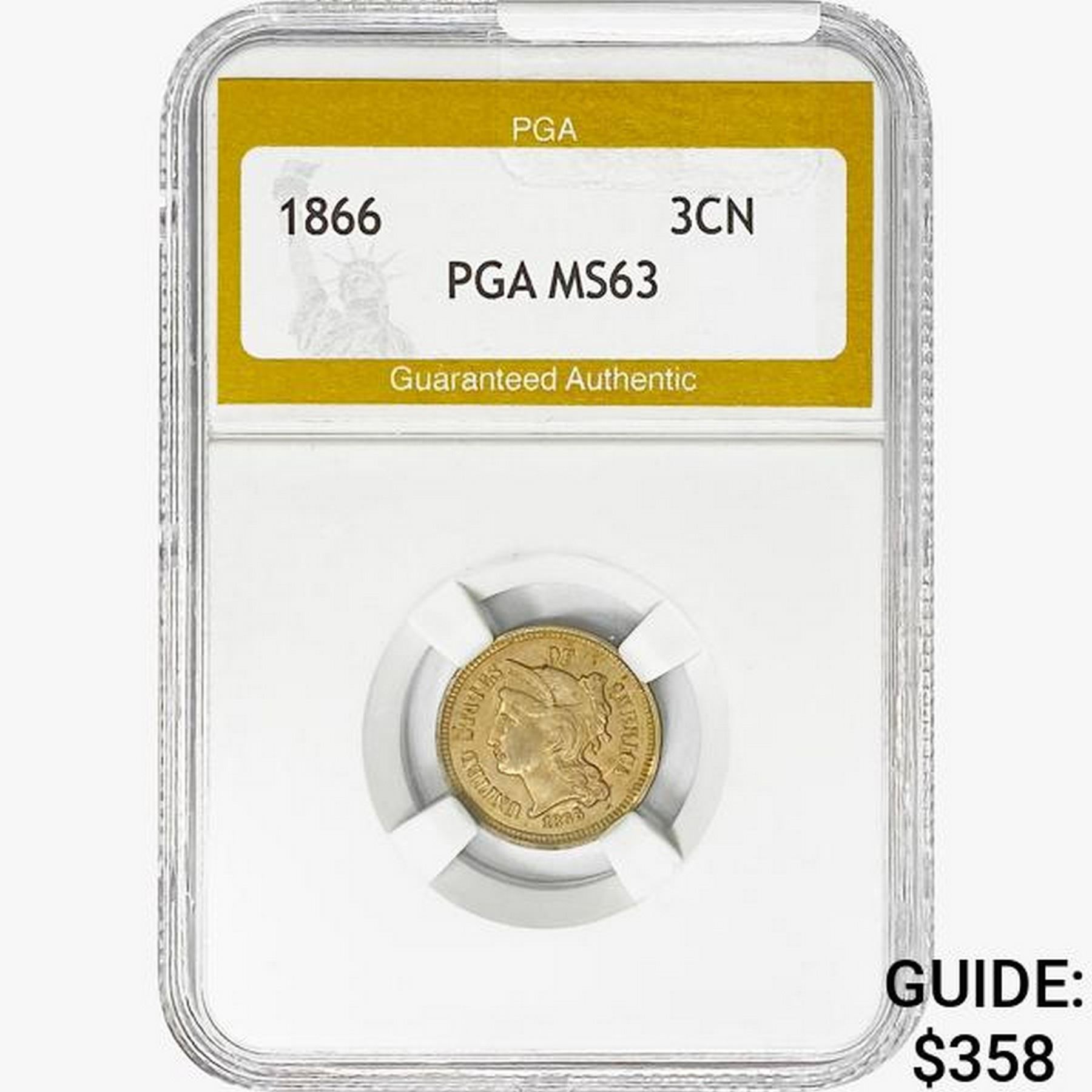 1866 Nickel Three Cent PGA MS63