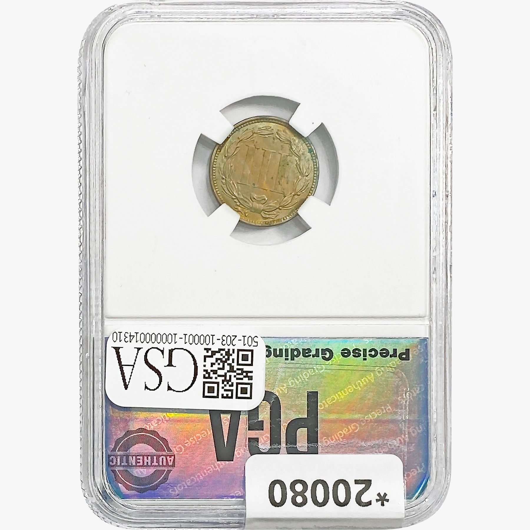 COINS AND CURRENCY LISTED IN GSA'S CATALOG AS GRADED AND ENCAPSULATED BY PCGS, NGC, ANACS, ICG, PCGS CURRENCY, PMG, PCGS BANKNOTE GRADING, CMC OR ANY OTHER THIRD-PARTY GRADING SERVICE ARE LIKEWISE SOLD "AS-IS" EXCEPT AS EXPRESSLY SET FORTH HEREIN. ALL THIRD-PARTY GRADING SERVICE GUARANTEES, INCLUDING AUTHENTICITY, ARE THE SOLE RESPONSIBILITY OF THE THIRD-PARTY GRADING SERVICE AND NOT WARRANTIES OR GUARANTEES OF GSA. BIDDERS SHOULD CONTACT THESE THIRD-PARTY GRADING SERVICES DIRECTLY WITH RESPECT TO ANY CLAIMS OR QUESTIONS THEY MAY HAVE CONCERNING THEIR GUARANTEES AND WARRANTIES. BIDDERS ACKNOWLEDGE AND AGREE THAT AUCTIONEER IS NOT BOUND BY OR LIABLE FOR ANY OPINION OR CERTIFICATION BY ANY THIRD-PARTY GRADING SERVICE. REMOVAL OF A PRODUCT FROM ITS PROTECTIVE CASING OR HOLDER OR ALTERATION OF ANY COIN HOLDER WAIVES ALL RIGHTS CONCERNING THE PRODUCT CONTAINED THEREIN.