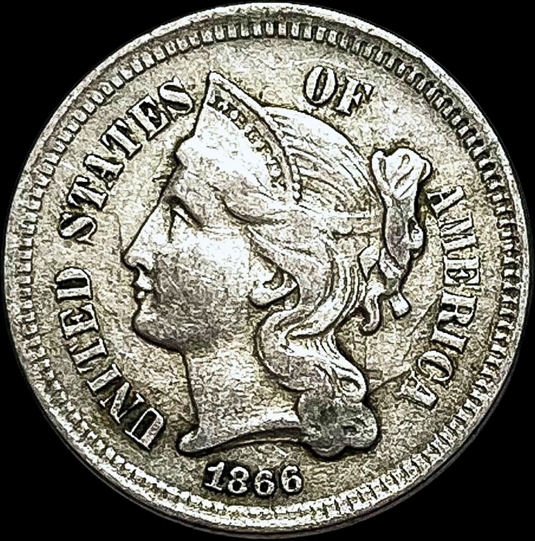 1866 Nickel Three-Cent Piece NEARLY UNCIRCULATED