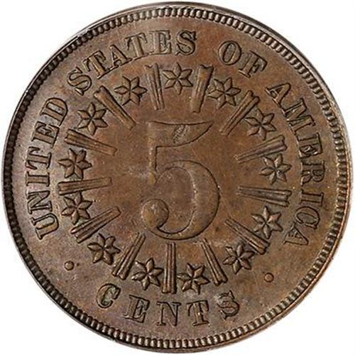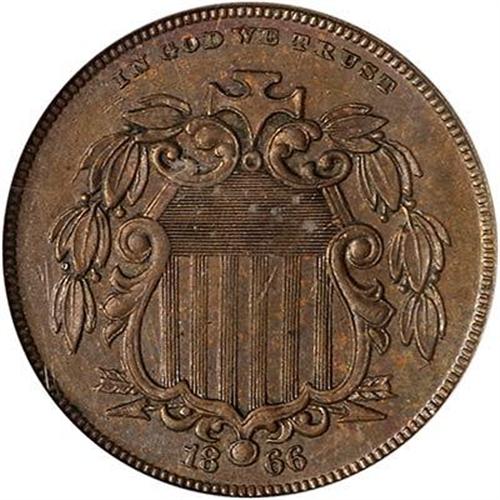 1866 Pattern Five Cents Copper, plain edge PCGS PR63 BN