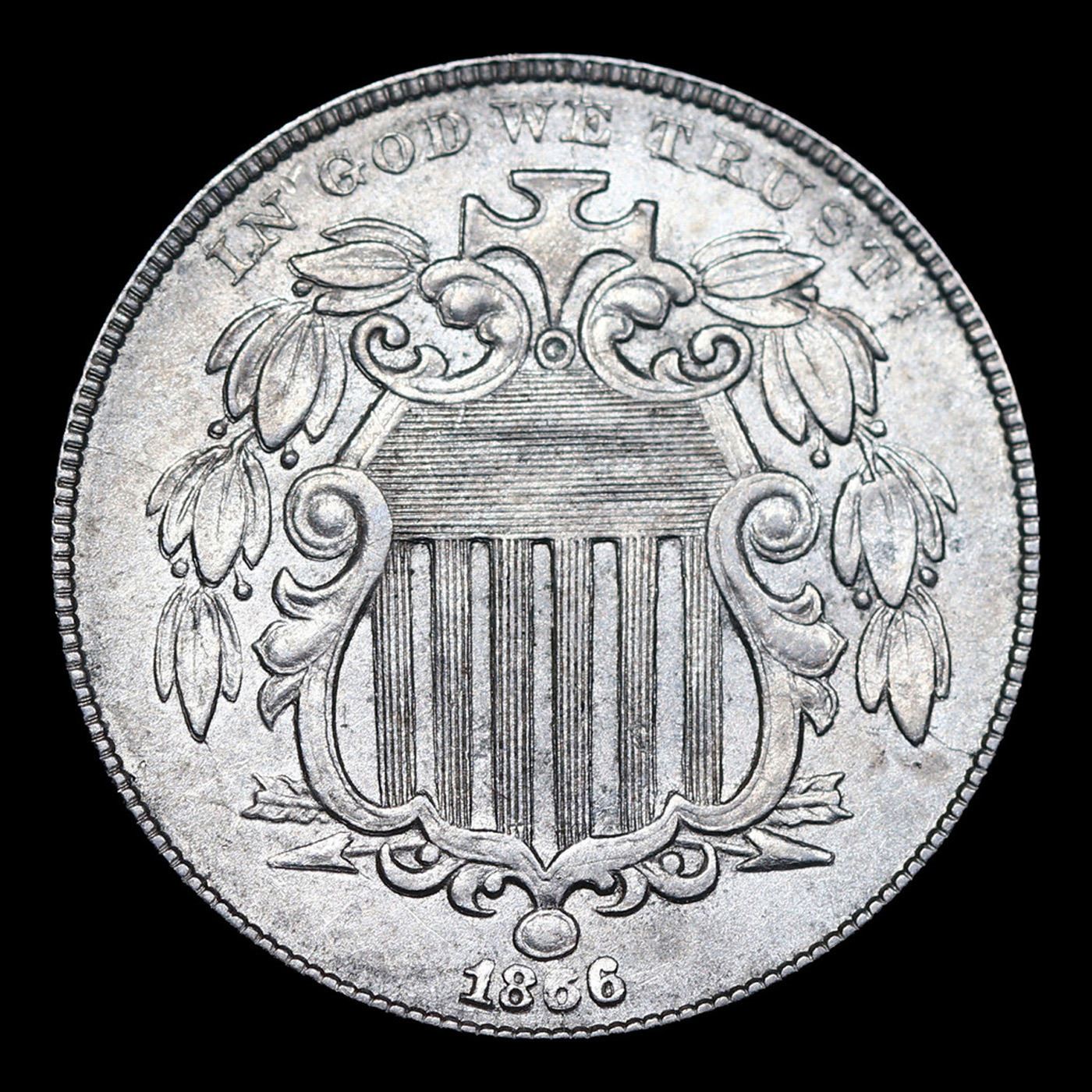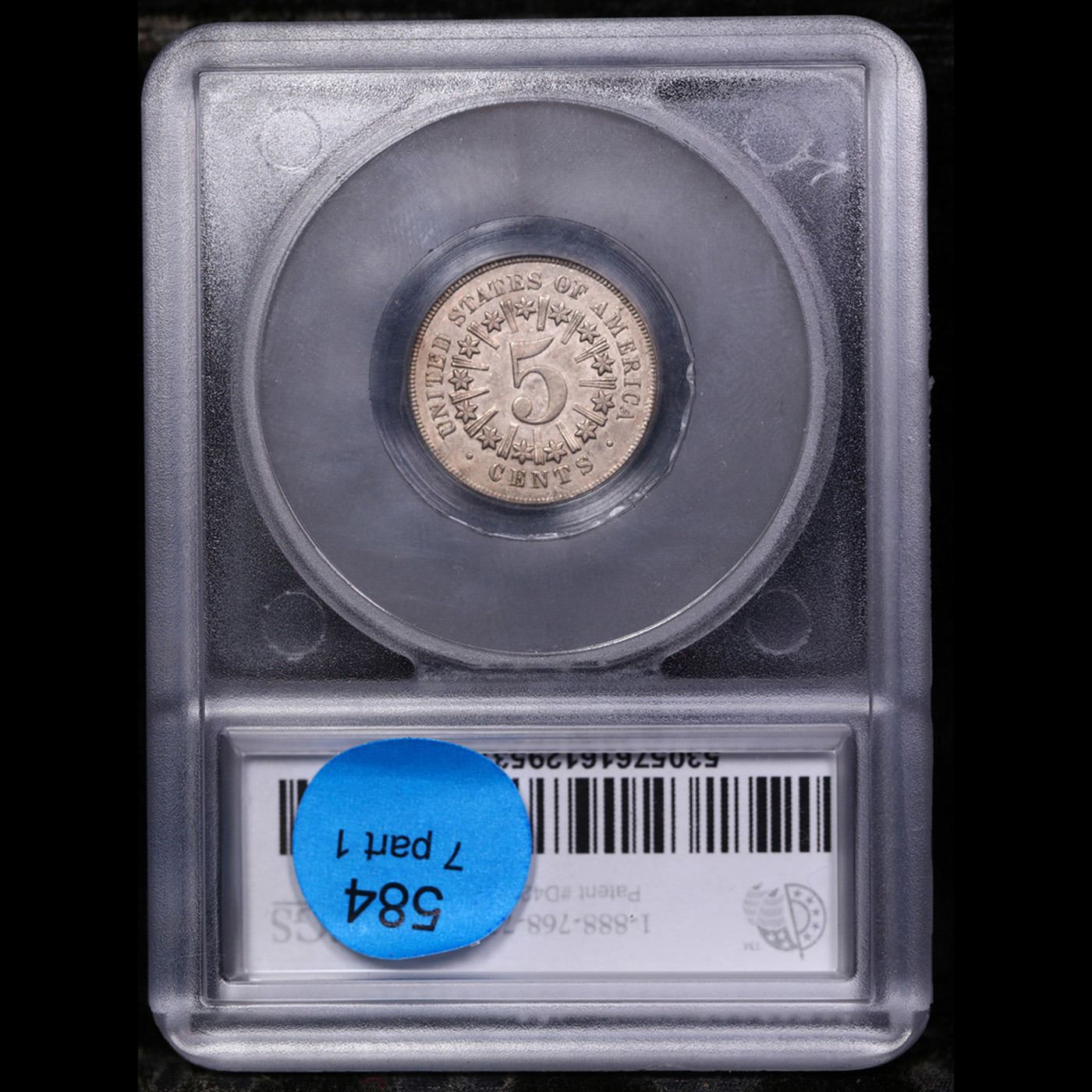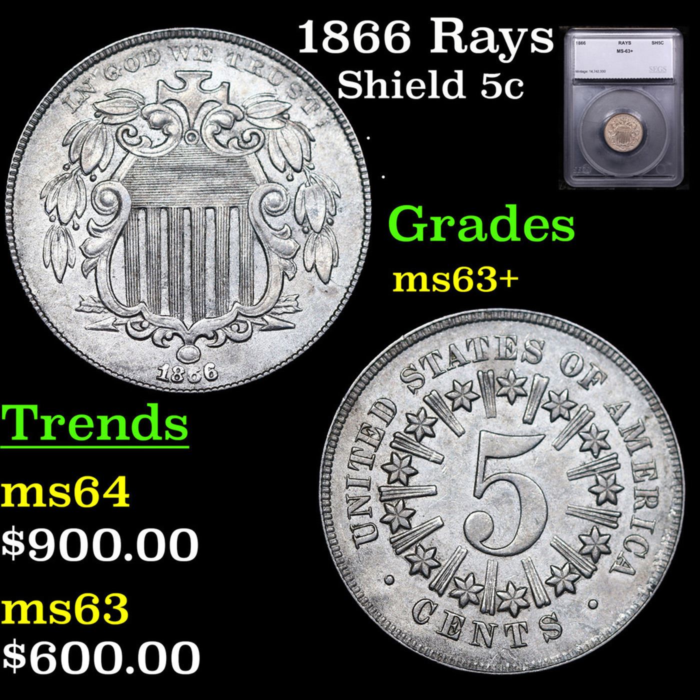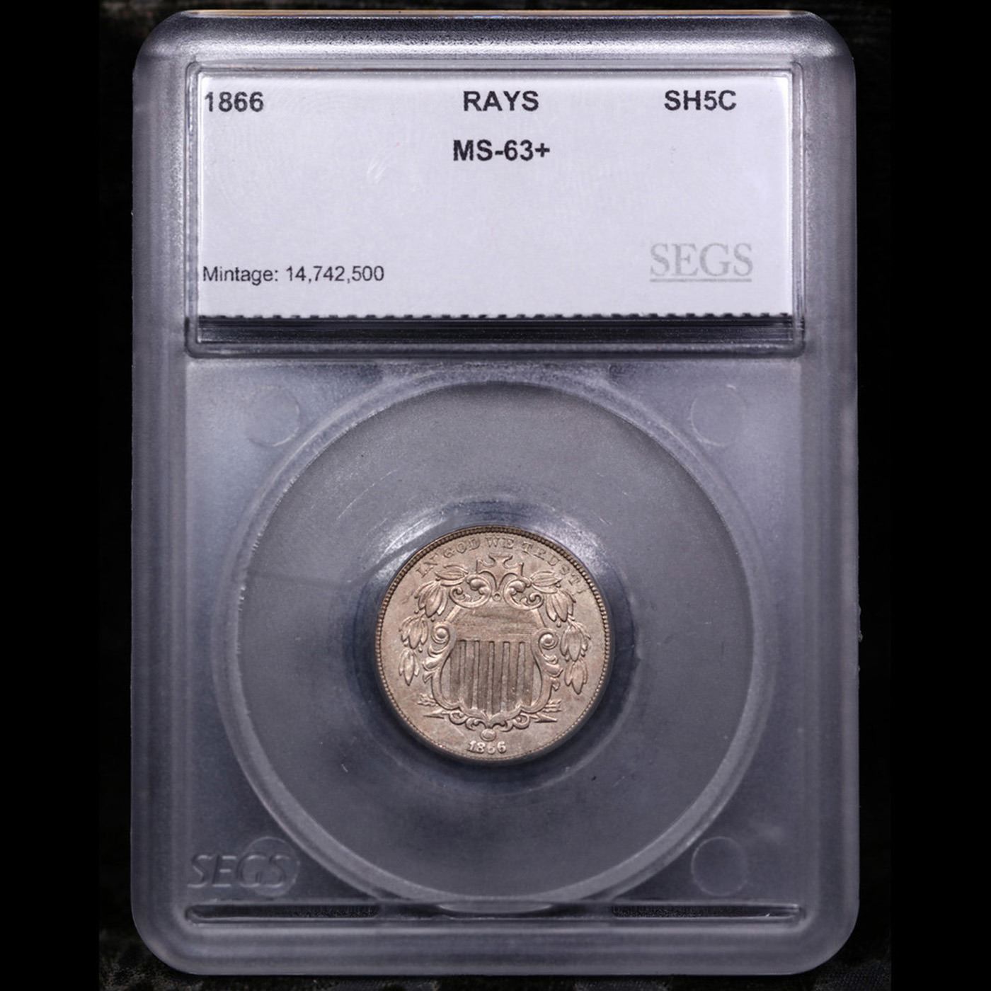 1866 Rays Shield Nickel 5c Graded ms63+ BY SEGS.