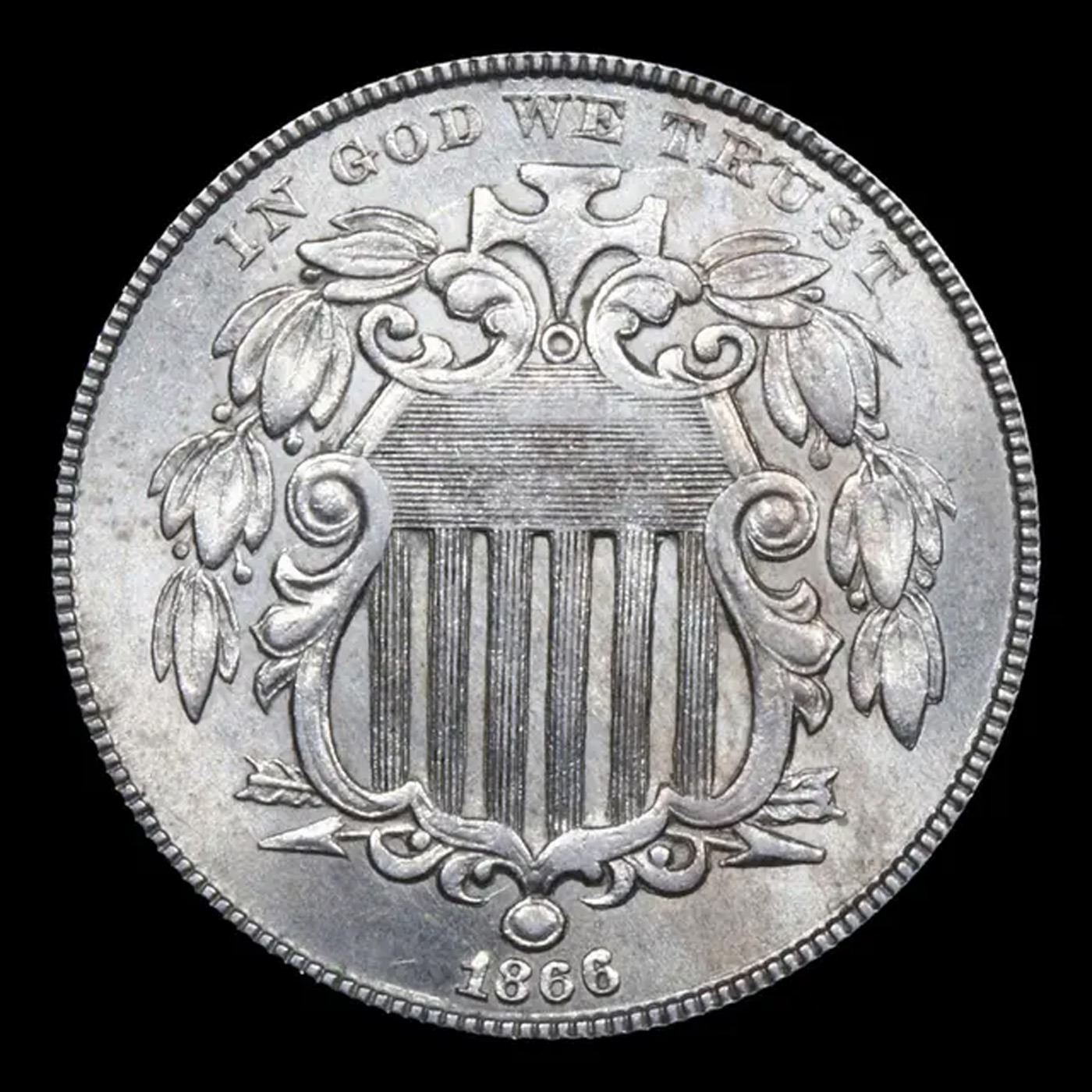 1866 Rays Shield Nickel 5c Grades Select Unc.