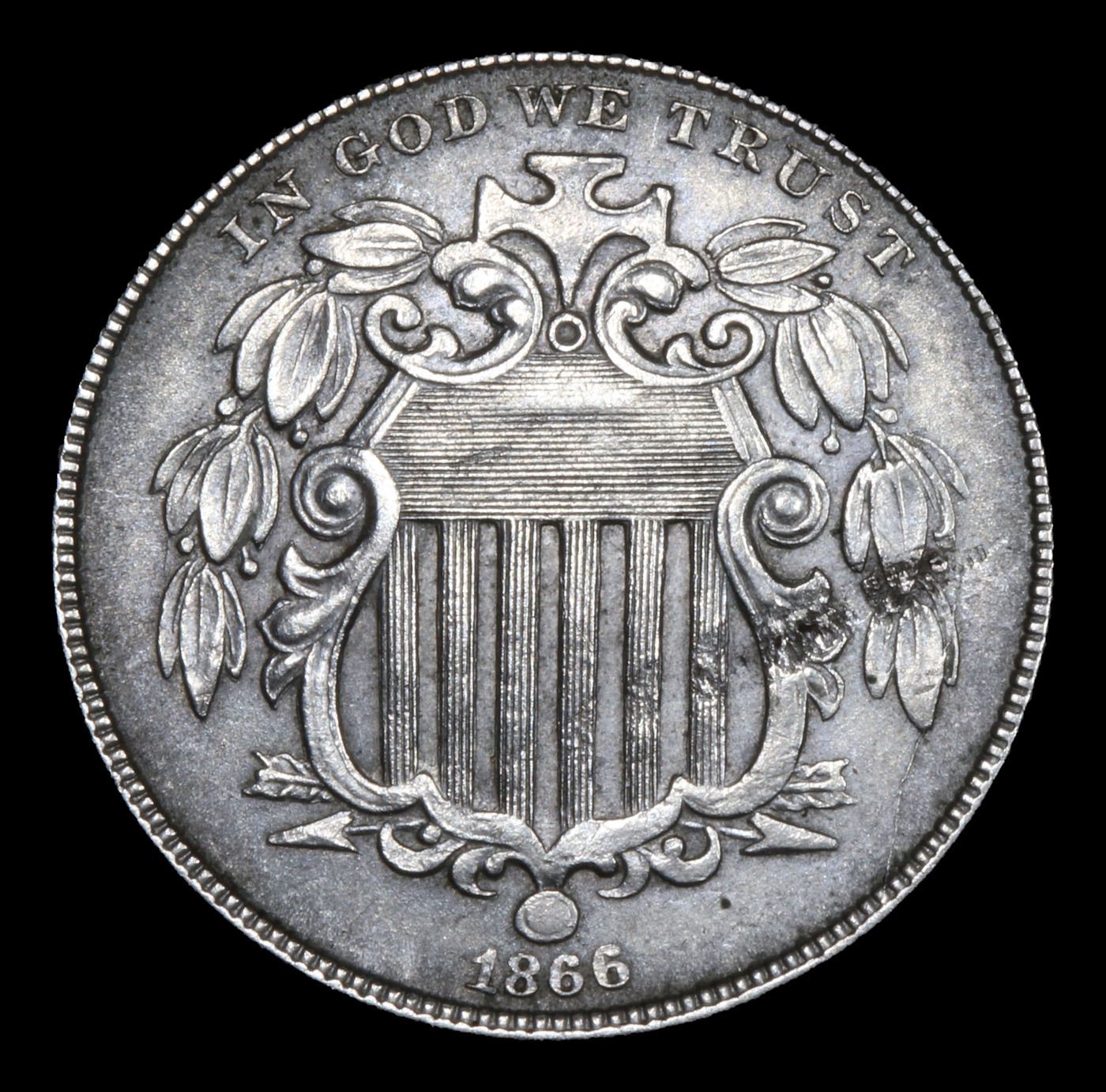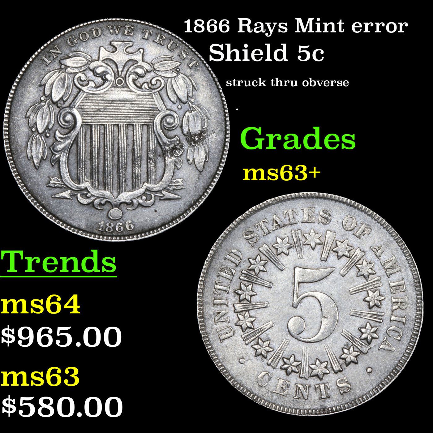 1866 Rays Mint error Shield Nickel 5c Grades Select+ Unc.