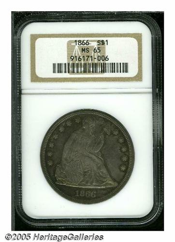 1866 S$1 Motto MS65 NGC. Even though 48,900 piece