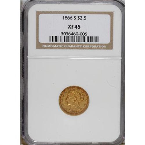 1866-S $2 1/2 XF45 NGC. NGC Census: (41/80). PCGS