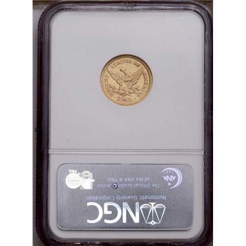 <B>1866-S<$2 1/2> XF45 NGC.</B></I> Semi-bright brassy-gold surfaces display several slide marks and light abrasions scattered over each side, and a pinscratch is noted in the lower left obverse field. Some of the strike softness that typifies this issue occurs in the centers.