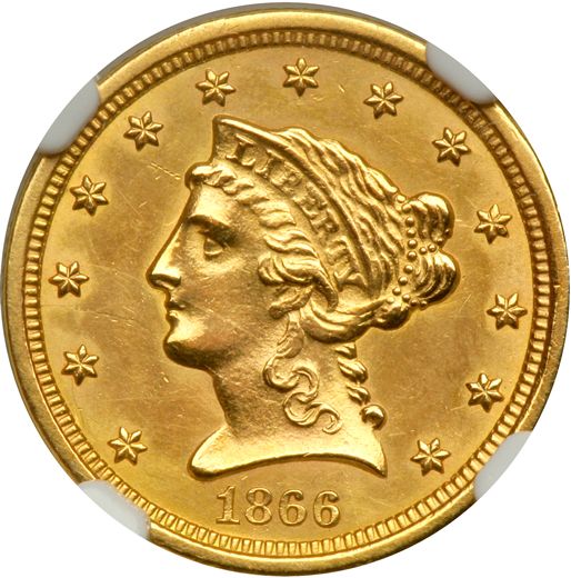 1866-S $2.50 Liberty. Improperly cleaned. 38,960 struck (PCGS # 7804) .