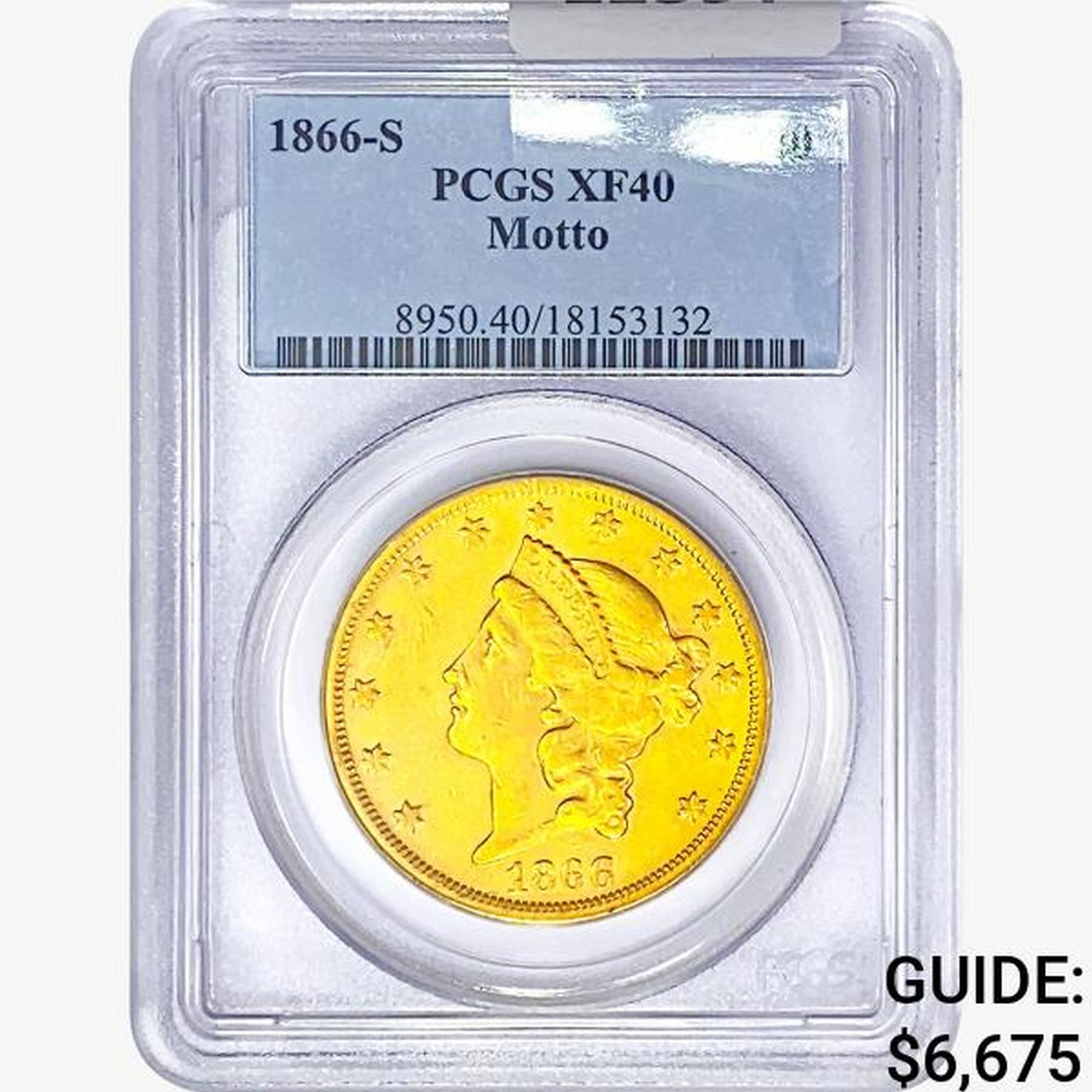 1866-S $20 Gold Double Eagle PCGS XF40 Motto