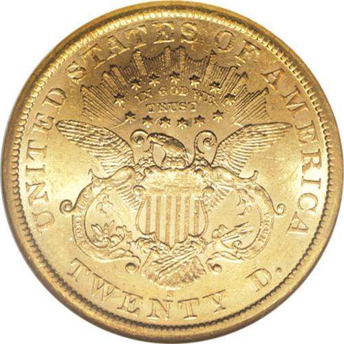 <B>1866-S $20 Motto AU58 NGC.</B></I> A beautiful example of this issue, most frequently found in About Uncirculated and rare in Mint State. Most of the original luster is still present, and in terms of wear the piece is just a whisper away from Mint State. Both sides are extremely close to a Prooflike designation, and only light field chatter is noted under a loupe. Sharply struck--and gorgeous!<BR><BR><b>Shipping:</b> Coins & Currency (<a target="_blank" href="http://www.heritageauctions.com/common/shipping.php">view shipping information</a>)