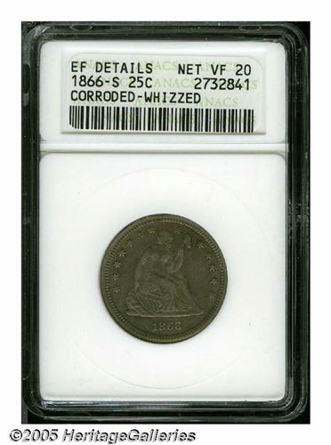 1866-S 25C --Corroded, Whizzed--ANACS. XF Details