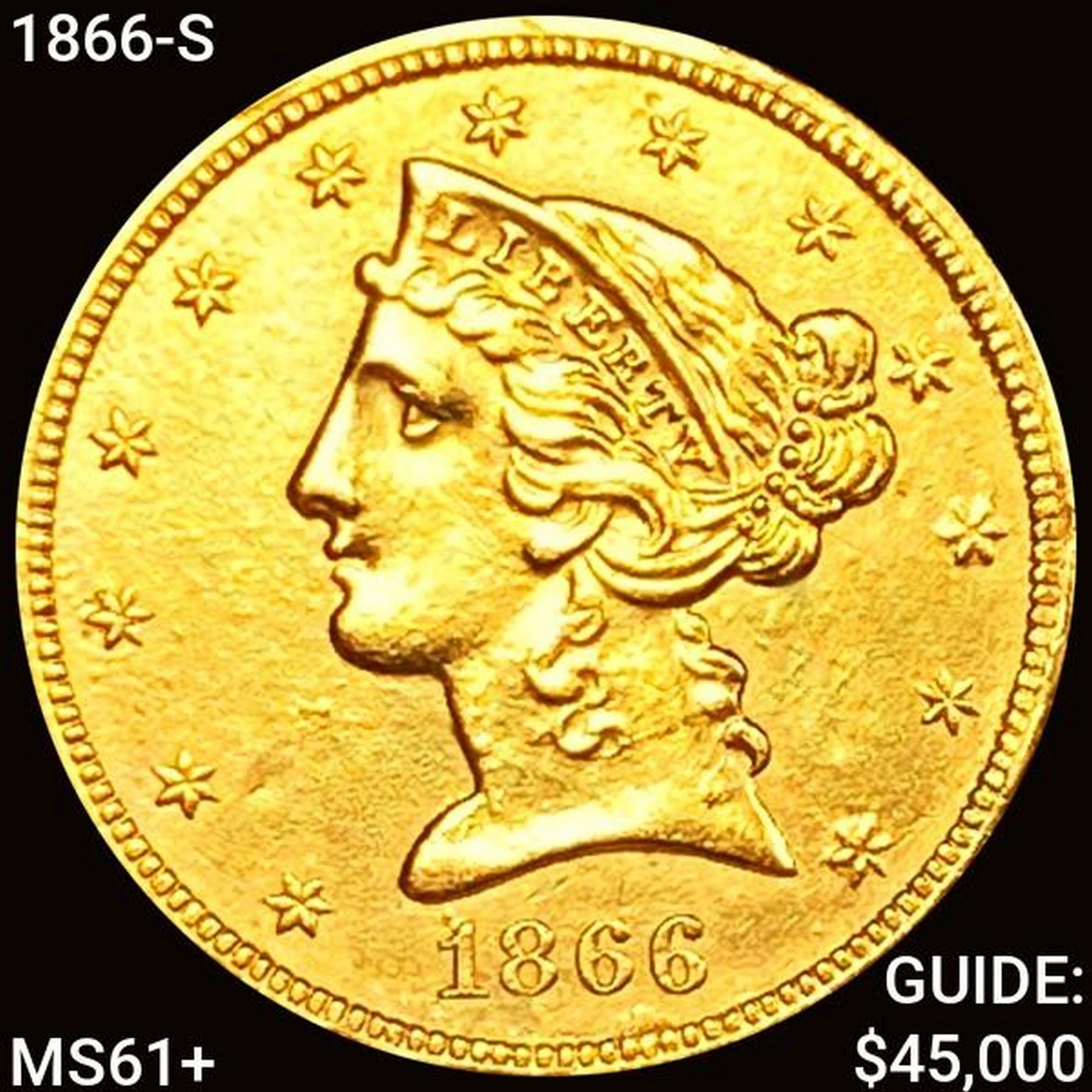 1866-S $5 Gold Half Eagle CLOSELY UNCIRCULATED