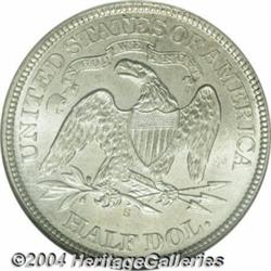 <table><tr><td><TABLE cellSpacing=0 cellPadding=0 width="100%" bgColor=#000000 border=0><TBODY> <TR><TD width="100%"><TABLE cellSpacing=1 cellPadding=3 width="100%" border=0><TBODY><TR><TD width="100%" bgColor=#79735c><FONT face=arial color=#ffffff size=3><B>Description</B> </FONT></TD></TR><TR><TD width="100%" bgColor=#ffffff><FONT face=arial size=2><B>1866-S 50C Motto MS64 NGC.</B></I> Half dollar dies did not reach the mint in San Francisco until May 1866, yet there was still enough time remaining in the year to strike 994,000 coins. The '66-S Motto is a very scarce coin given that so many pieces were produced. Apparently the vast majority of the mintage was placed into circulation and stayed there as very few Mint State coins are known today. This is one of the finest pieces known. The striking details are strong throughout and there are no obvious abrasions on either side, and the surfaces are mostly steel-gray with a light overlay of golden present as well. Population: 4 in 64, 6 finer (11/03). </FONT></TD></TR></TBODY></TABLE></TD></TR></TBODY></TABLE><BR><A name=PricesRealized></A><TABLE cellSpacing=0 cellPadding=0 width="100%" bgColor=#000000 border=0><TBODY><TR><TD width="100%"><TABLE cellSpacing=1 cellPadding=3 width="100%" border=0><TBODY><TR><TD width="100%" bgColor=#79735c><A name=PR><FONT face=arial color=#ffffff size=3><B>Previous Prices from Heritage Auctions</B> </FONT></A></TD></TR><TR><TD bgColor=#f6f6ed>No Prior Data Recorded </TD></TR><TR><TD bgColor=#ffffff><FONT face=arial size=1 ?>PLEASE NOTE: All prices realized reflect the final hammer price PLUS the buyer's premium in auctions that charge a buyer's premium. Each item has a notation at the top of the listing indicating whether that lot included a buyer's premium. Example: A item that sells with a final hammer price of $100 and a 20% buyer's premium will display with a price realized of $120. All information listed is intended to be as accurate as possible, but errors are possible. Please use this guide carefully and inform us of any inaccuracies. </FONT></TD></TR></TBODY></TABLE></TD></TR></TBODY></TABLE><BR><TABLE cellSpacing=0 cellPadding=0 width="100%" bgColor=#000000 border=0><TBODY><TR><TD width="100%"><TABLE cellSpacing=1 cellPadding=3 width="100%" border=0><TBODY><TR><TD width="100%" bgColor=#79735c colSpan=6><FONT face=arial color=#ffffff size=3><B>Price Guide*</B> </FONT></TD></TR><TR bgColor=#f6f6ed><TD align=middle><B>Grade</B> </TD><TD align=middle><B>Coin World<BR>(Trends)</B> </TD><TD align=middle><B>Numismedia<BR>Retail</B> </TD><TD align=middle><B>Numismedia<BR>Wholesale</B> </TD><TD align=middle><B>Coin<BR>Universe</B> </TD><TD align=middle><B>Heritage<BR>Value Index</B> </TD></TR><TR bgColor=#ffffff><TD align=middle>63</TD><TD align=right>$2,500.00</TD><TD align=right>---</TD><TD align=right>---</TD><TD align=right>$2,100.00</TD><TD align=right>$2,017.50</TD></TR><TR style="FONT-WEIGHT: bold" bgColor=#cccfdd><TD align=middle>64</TD><TD align=right>$5,000.00</TD><TD align=right>---</TD><TD align=right>---</TD><TD align=right>$5,525.00</TD><TD align=right>$3,580.83</TD></TR><TR bgColor=#ffffff><TD align=middle>65</TD><TD align=right>$9,000.00</TD><TD align=right>---</TD><TD align=right>---</TD><TD align=right>$9,100.00</TD><TD align=right>$6,323.33</TD></TR><TR bgColor=#ffffff><TD colSpan=6><FONT size=1>*All information listed is intended to be as accurate as possible, but errors are possible. No item may be returned or refused based on this information which is provided as a service to our customers. You should contact each pricing source directly to determine the accuracy of this information. </FONT></TD></TR></TBODY></TABLE></TD></TR></TBODY></TABLE><BR><TABLE cellSpacing=0 cellPadding=0 width="100%" bgColor=#000000 border=0><TBODY><TR><TD width="100%"><TABLE cellSpacing=1 cellPadding=3 width="100%" border=0><TBODY><TR><TD width="100%" bgColor=#79735c><FONT face=arial color=#ffffff size=3><B>Population Guide</B> </FONT></TD></TR><TR bgColor=#ffffff><TD align=middle><!-- Begin Output of Population Grid--><TABLE cellSpacing=0 cellPadding=0 width="100%" border=0><TBODY><TR><TD vAlign=center><TABLE cellSpacing=0 width="100%" border=1 cellsadding="3"><TBODY><TR><TD vAlign=center><TABLE cellSpacing=0 cellPadding=3 width="100%" border=1><TBODY><TR><TD vAlign=center align=middle bgColor=#f0f1e8 colSpan=2 <CENTER><FONT face=Arial size=2><B>PCGS Pop </B></FONT><CENTER></CENTER></TD><TD vAlign=center align=middle bgColor=#f0f1e8 colSpan=2><CENTER><FONT face=Arial size=2><B>NGC Pop</B></CENTER></FONT></TD></TR><TR><TD vAlign=center><FONT face=Arial size=2>(64)</FONT> </TD><TD vAlign=center align=right><FONT face=Arial size=2>4</FONT> </TD><TD vAlign=center><FONT face=Arial size=2>(64)</FONT> </TD><TD vAlign=center align=right><FONT face=Arial size=2>5</FONT> </TD></TR><TR><TD vAlign=center><FONT face=Arial size=2>(>64)</FONT> </TD><TD vAlign=center align=right><FONT face=Arial size=2>2</FONT> </TD><TD vAlign=center><FONT face=Arial size=2>(>64)</FONT> </TD><TD vAlign=center align=right><FONT face=Arial size=2>7</FONT> </TD></TR></TBODY></TABLE></TD></TR></TBODY></TABLE></TD></TR></TBODY></TABLE><!-- End Output of Population Grid--></TD></TR></TBODY></TABLE></TD></TR></TBODY></TABLE><BR><TABLE cellSpacing=0 cellPadding=0 width="100%" bgColor=#000000 border=0><TBODY><TR> <font color='#000000'><span style='background-color: #FFFFFF'><td bgcolor='#FFFFFE'> Important notice: Heritage usually auctions material at the rate of 200-250 lots per hour. On some occasions eBay Live bid software or the Internet may not be able to keep up with the pace of the auction. We recommend placing a realistic absentee bid now as insurance to avoid disappointment. Occasionally the auctioneer may eliminate or reject an eBay Live bid, and the auctioneer may also reopen a lot after the close of the eBay live bidding (usually because we missed an audience bid), and may reject your bid even if it shows you as the winning bidder. By b