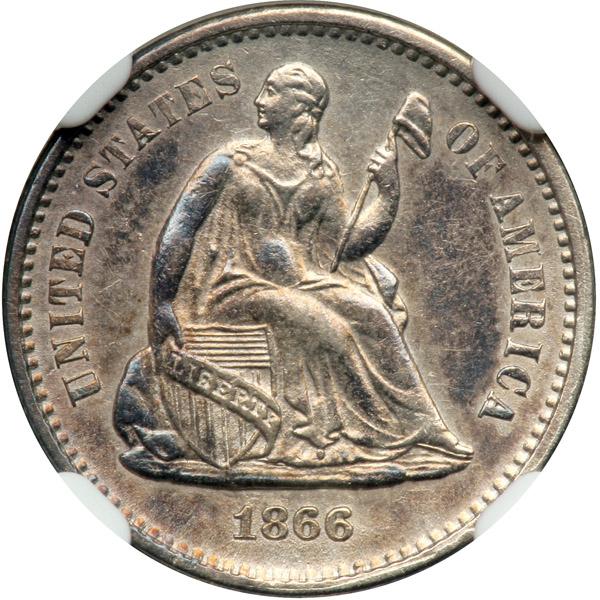 1866-S. NGC graded AU-55. Light ot medium violet toning.