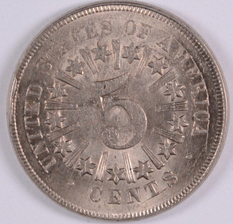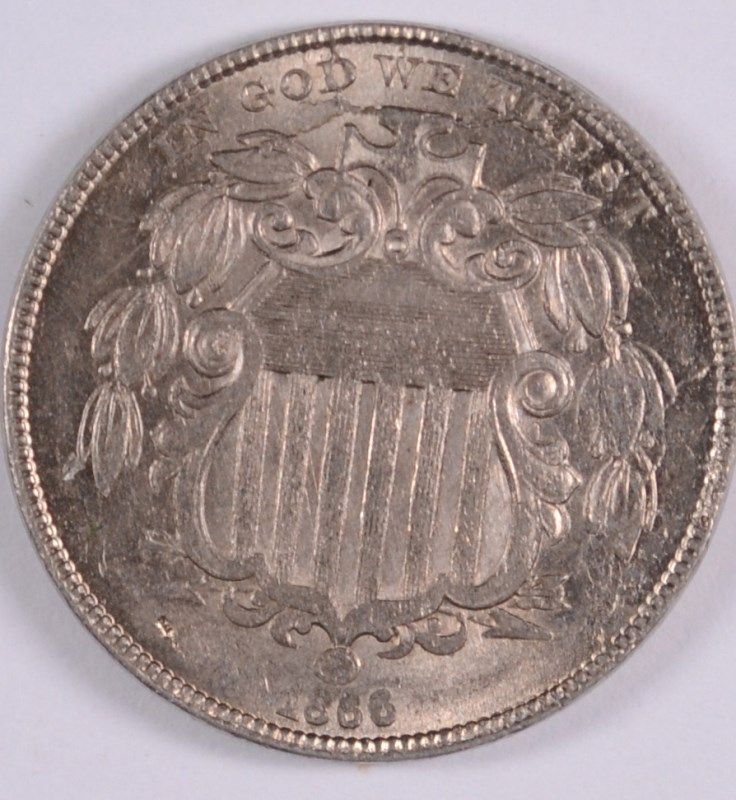 1866 SHIELD NICKEL AU/BU NICE! ONE MARK ON OBV., STILL NICE!