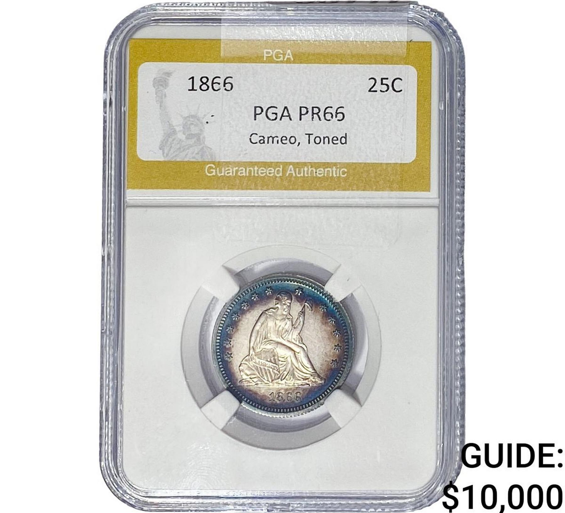 1866 Seated Liberty Quarter PGA PR66 Cameo Toned