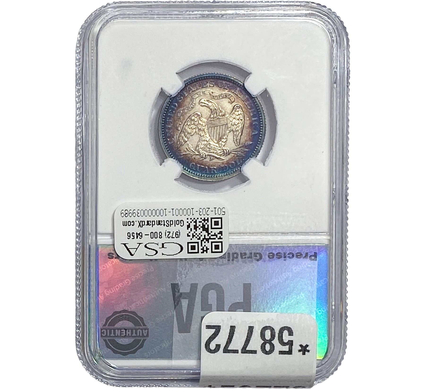 COINS AND CURRENCY LISTED IN GSA’S CATALOG AS GRADED AND ENCAPSULATED BY PCGS, NGC, ANACS, ICG, PCGS CURRENCY, PMG, PCGS BANKNOTE GRADING, CMC OR ANY OTHER THIRD-PARTY GRADING SERVICE ARE LIKEWISE SOLD “AS-IS” EXCEPT AS EXPRESSLY SET FORTH HEREIN. ALL THIRD-PARTY GRADING SERVICE GUARANTEES, INCLUDING AUTHENTICITY, ARE THE SOLE RESPONSIBILITY OF THE THIRD-PARTY GRADING SERVICE AND NOT WARRANTIES OR GUARANTEES OF GSA. BIDDERS SHOULD CONTACT THESE THIRD-PARTY GRADING SERVICES DIRECTLY WITH RESPECT TO ANY CLAIMS OR QUESTIONS THEY MAY HAVE CONCERNING THEIR GUARANTEES AND WARRANTIES. BIDDERS ACKNOWLEDGE AND AGREE THAT AUCTIONEER IS NOT BOUND BY OR LIABLE FOR ANY OPINION OR CERTIFICATION BY ANY THIRD-PARTY GRADING SERVICE. REMOVAL OF A PRODUCT FROM ITS PROTECTIVE CASING OR HOLDER OR ALTERATION OF ANY COIN HOLDER WAIVES ALL RIGHTS CONCERNING THE PRODUCT CONTAINED THEREIN.