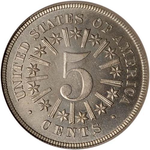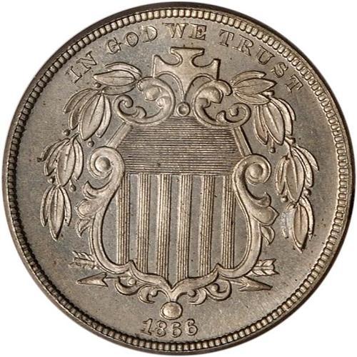 <b>1866 Shield Nickel. PCGS graded Proof 65.</b> Glistening original gray surfaces display strong luster with a whisper of faint satin luster on the shield, stars, and tops of the letters in the legend, providing contrast. Sharp and appealing as the first year of issue with Rays on the reverse <b>(PCGS # 3817)</b> <i>