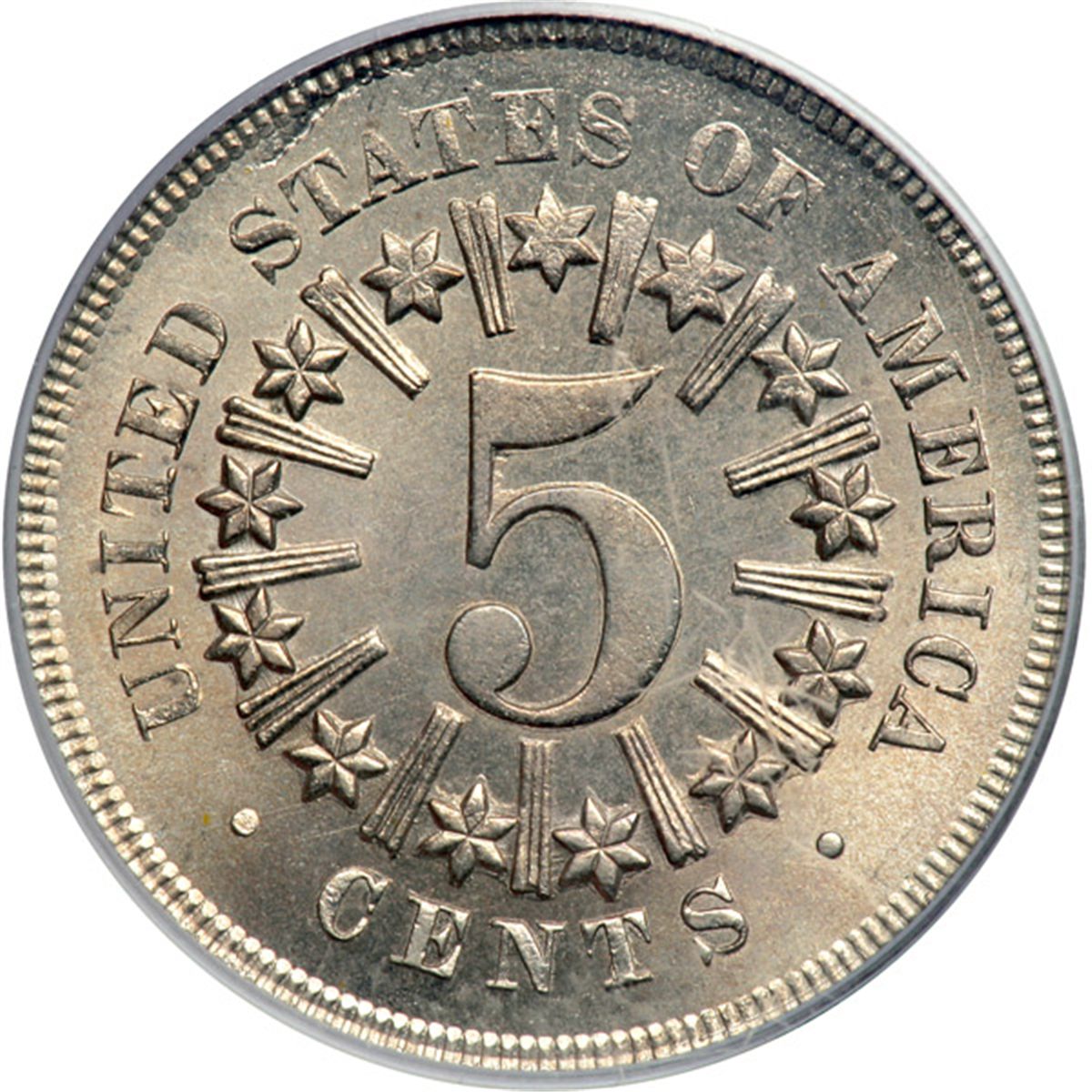 Overworked, often clashed dies eliminate most Mint State survivors of this and other high production Shield Nickel issues from consideration above the Choice level. One look at this truly exceptional coin and it becomes immediately clear that it may have been produced from a fresh pair of dies. Intense luster shimmers over both sides and the strike is boldly executed (PCGS # 3790) .