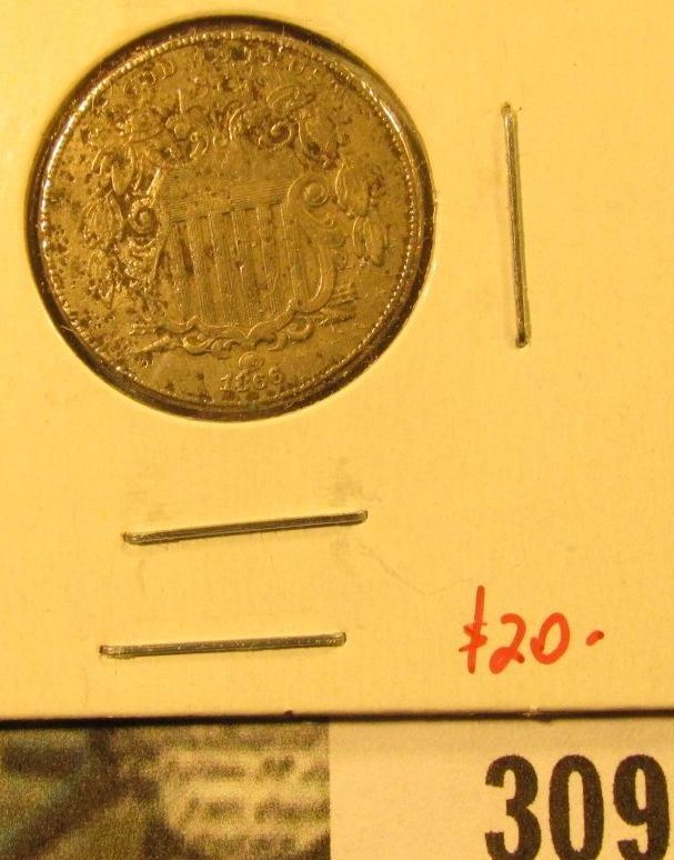 1866 Shield Nickel, F obverse pitting, value $20