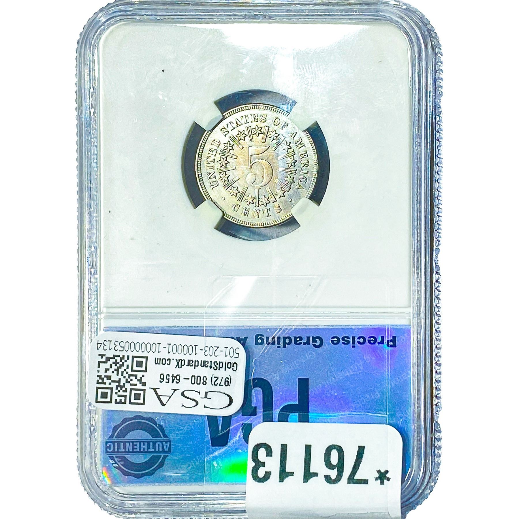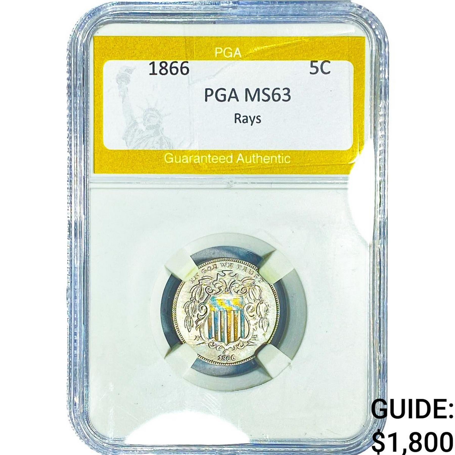 1866 Shield Nickel PGA MS63 Rays