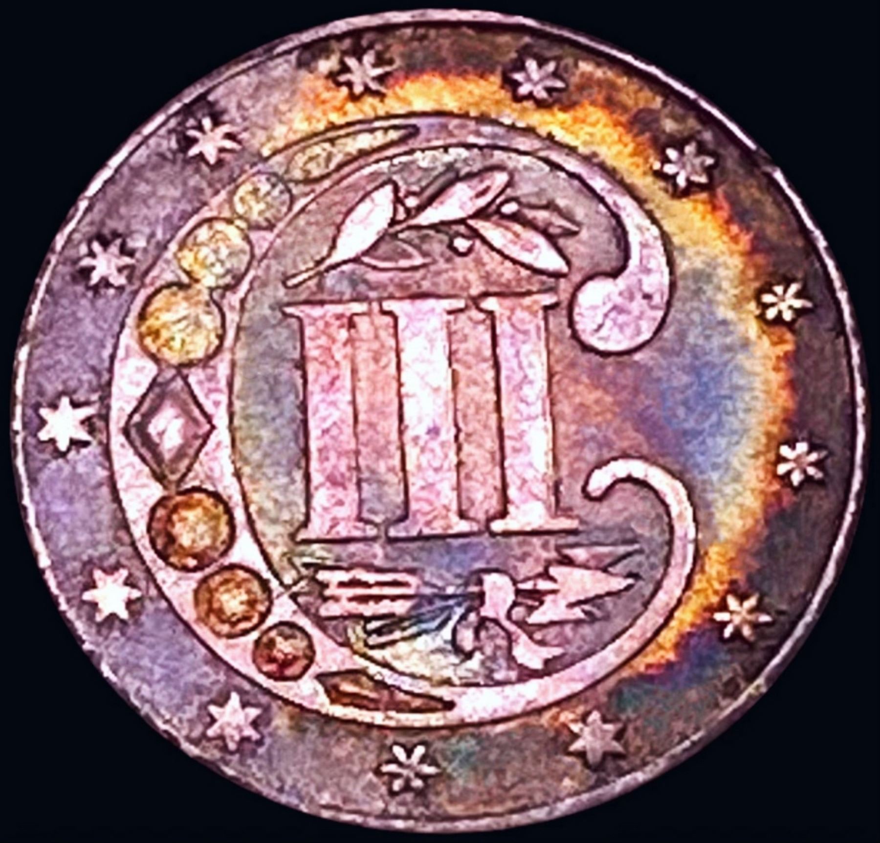 1866 Silver Three Cent GEM BU +