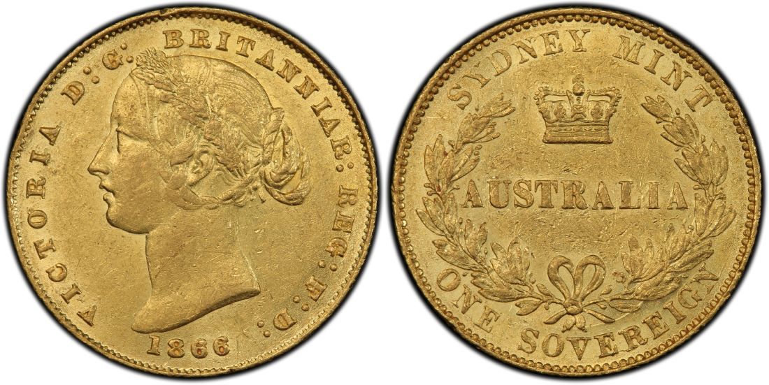 1866 Sydney Mint QV Type II Sovereign PCGS AU 55