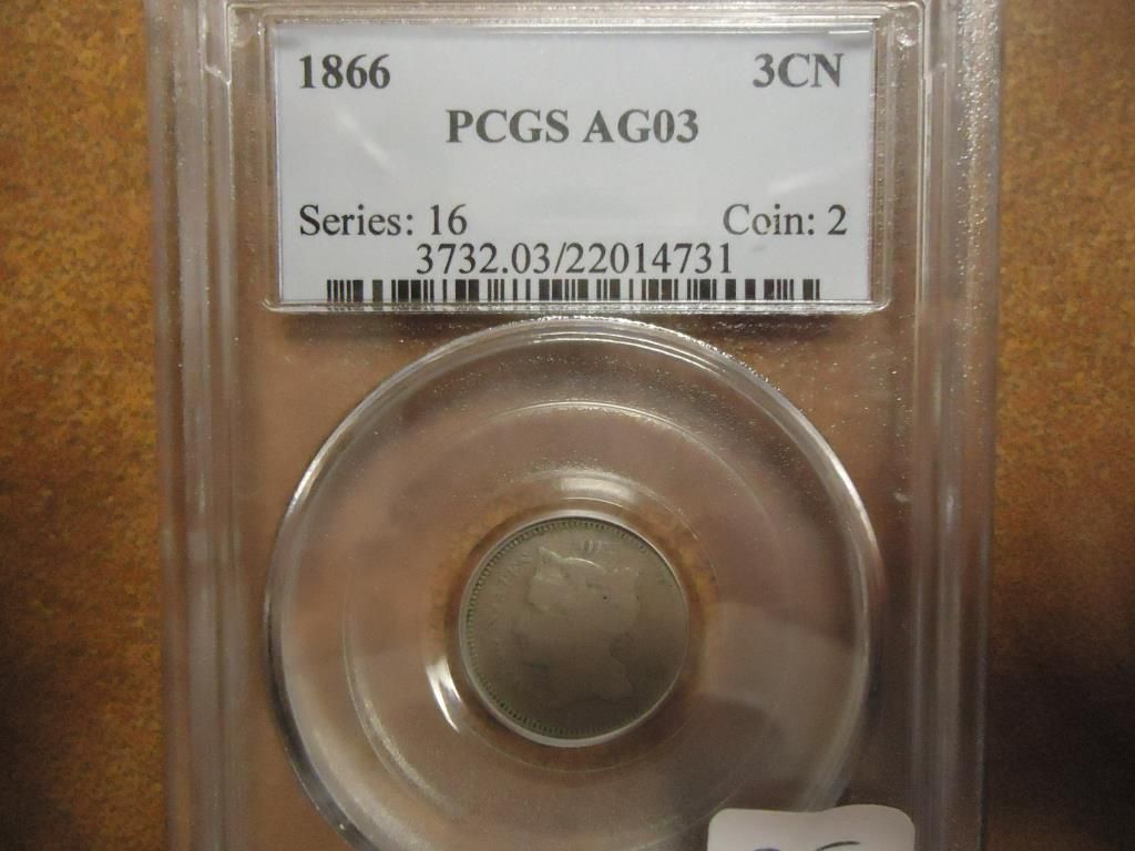 1866 THREE CENT PIECE (NICKEL) PCGS AGO3