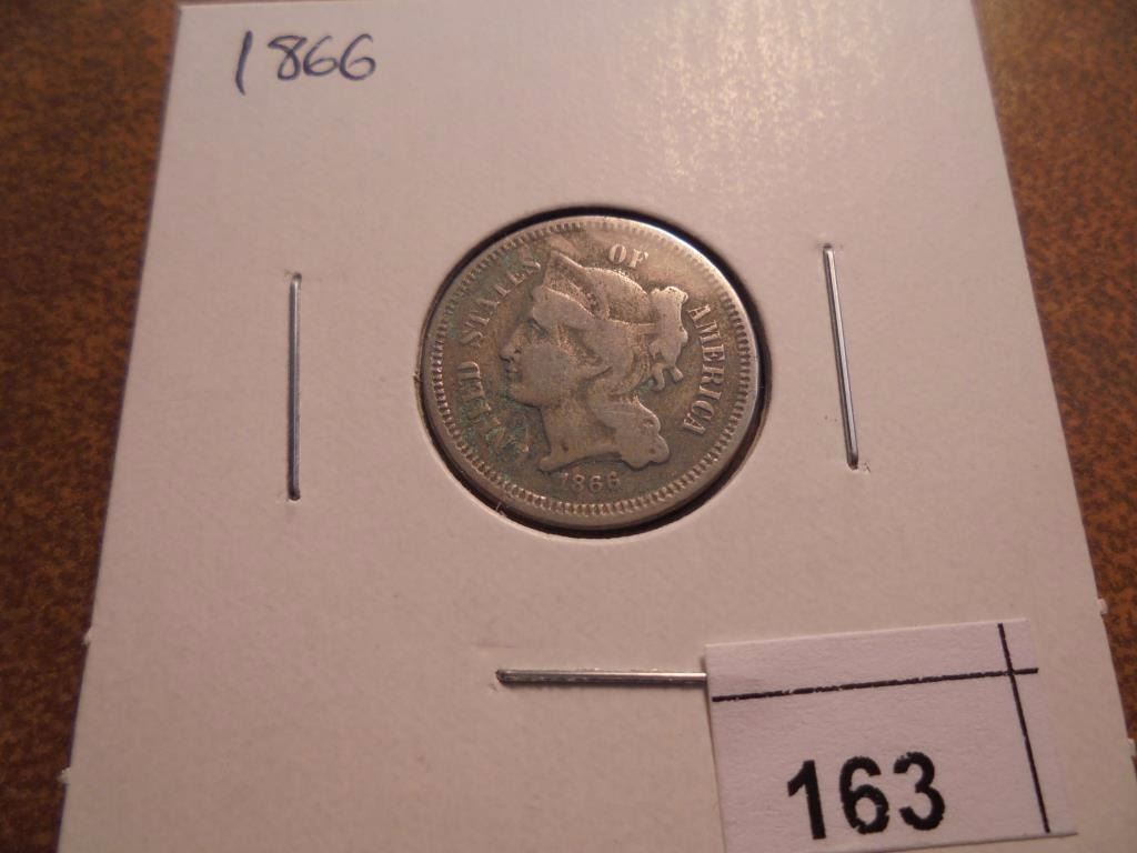 1866 THREE CENT PIECE (NICKEL) WITH VIRDIGRIS