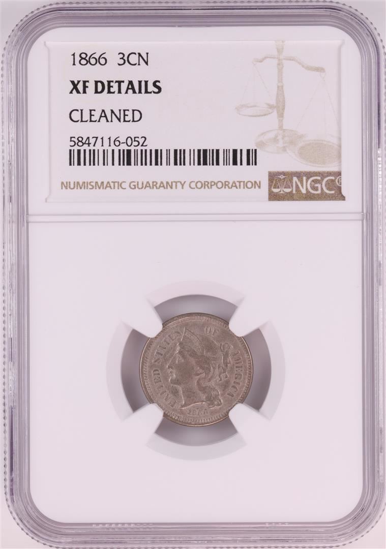 One 1866 Three Cent Nickel Coin NGC XF Details. NGC Certified.