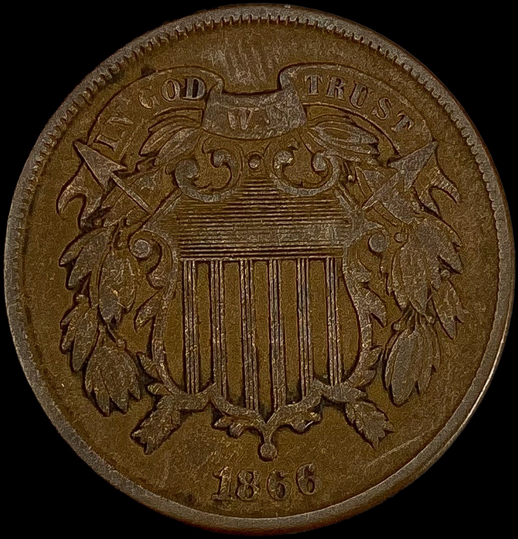 1866 Two Cent Piece ABOUT UNCIRCULATED