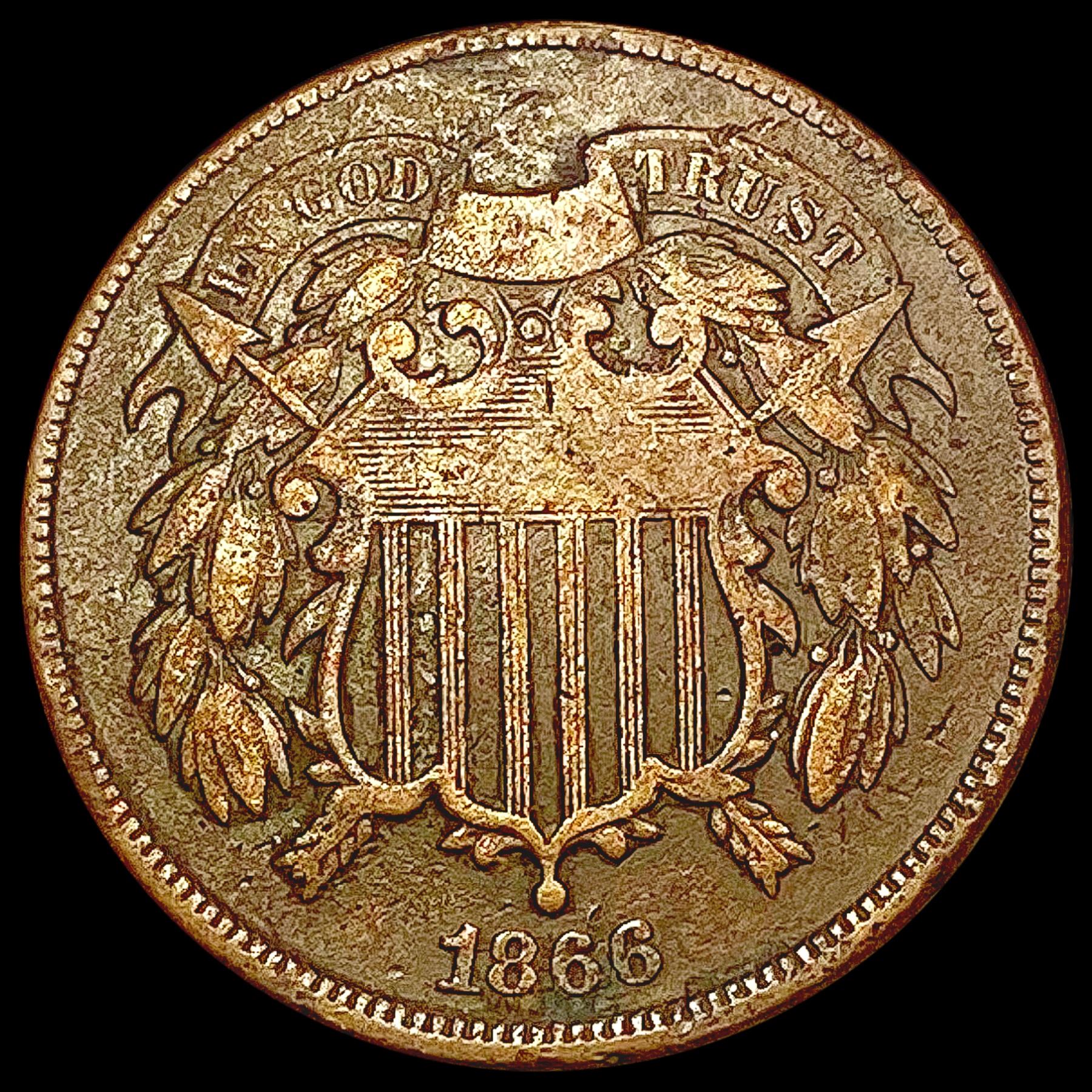 1866 Two Cent Piece NEARLY UNCIRCULATED