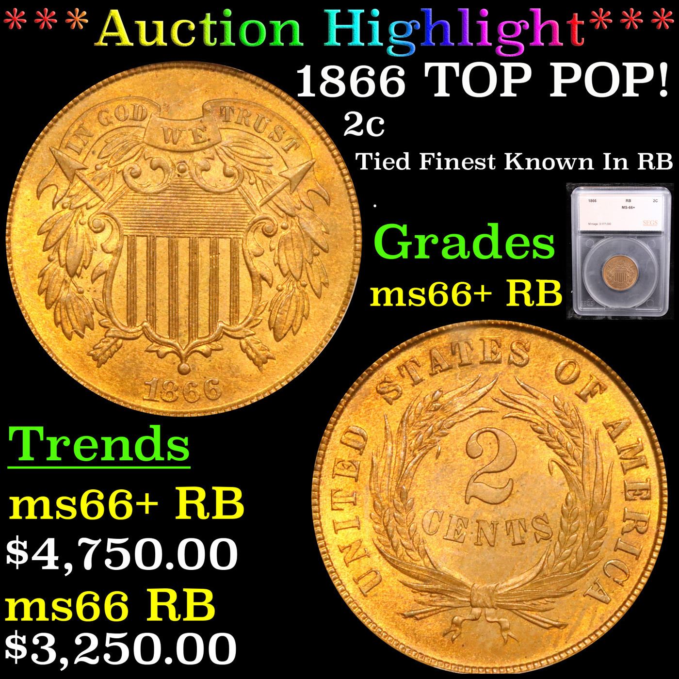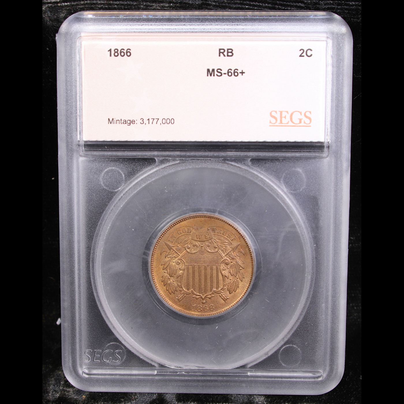 1866 TOP POP! Two Cent Piece 2c Graded ms66+ RB BY SEGS. A Corey's Pick, Bid to Win, Don't let it get Away, you might not find its equal Coin. I give this coin my highest recommendation
