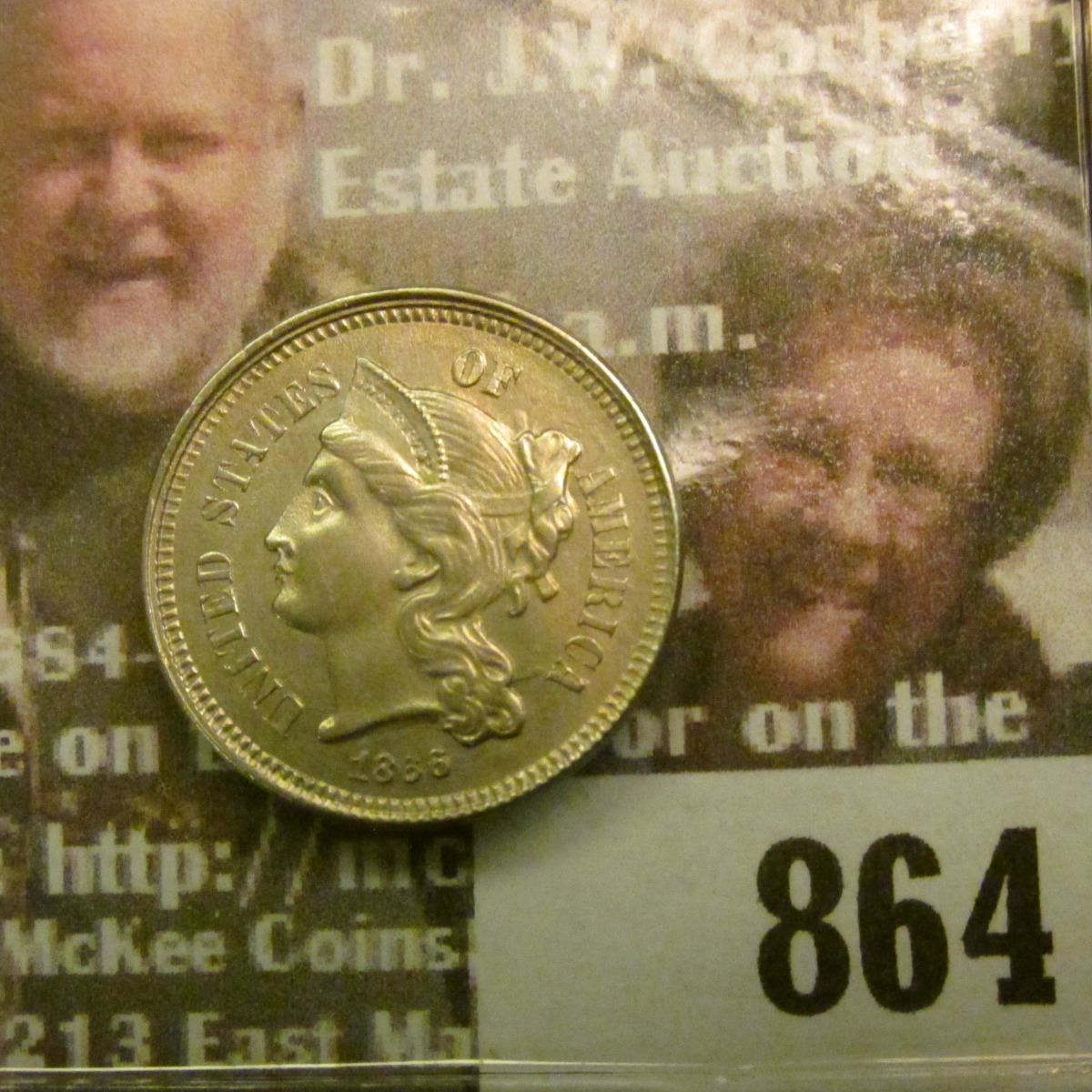 1866 U.S. Three-Cent Nickel, MS 60. Some doubling on the obverse lettering.