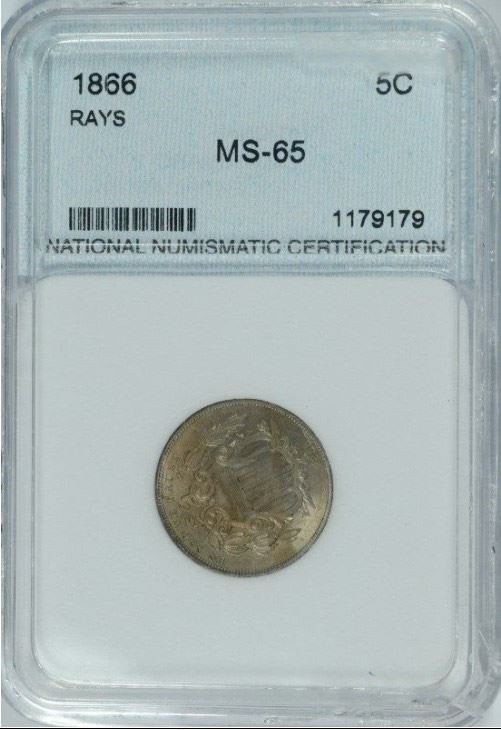 1866 US 5-Cent Rays - MS-65 NNC-1179179 - Value: $2300.00(US)