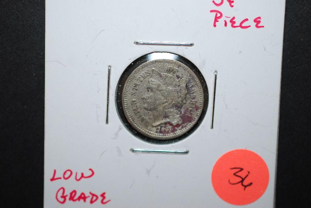 1866 US Three Cent Piece; Low Grade; EST. $5-10