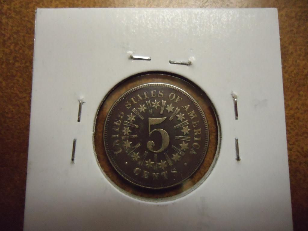 1866 WITH RAYS SHIELD NICKEL DARK XF