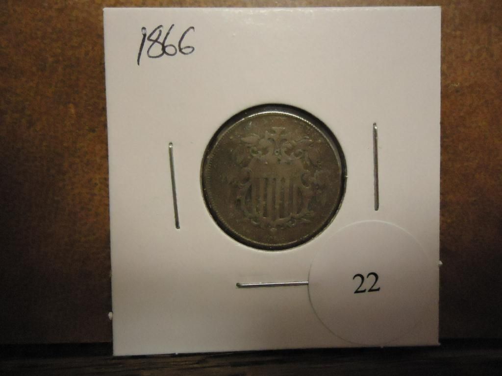 1866 WITH RAYS SHIELD NICKEL (VERY GOOD)