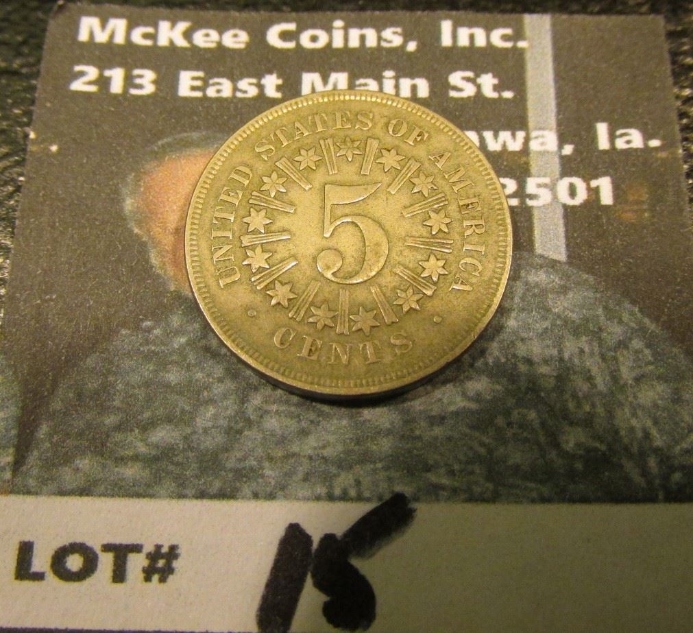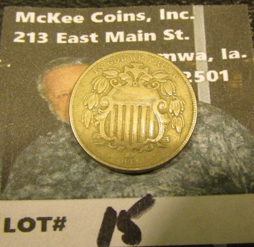 1866 With Rays U.S. Shield Nickel, Fine, 2016 Red Book value $50.00