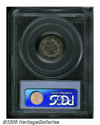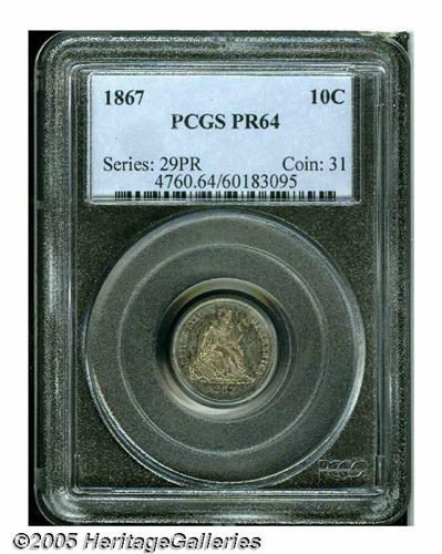 <B>1867<10C> PR64 PCGS.</B></I> The moderately toned surfaces reveal cobalt-blue and russet highlights, more intense over the obverse. A coin with considerably more eye appeal than the assigned grade would seem to indicate.