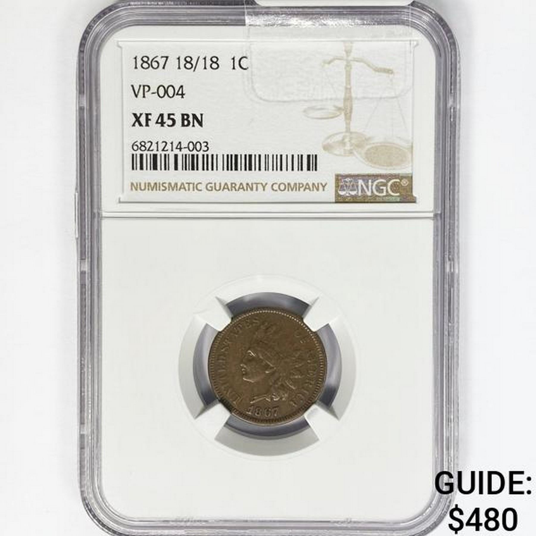 1867 18/18 Indian Head Cent NGC XF45 BN VP-004