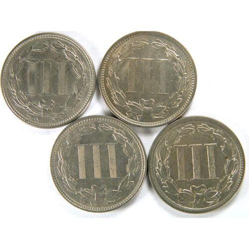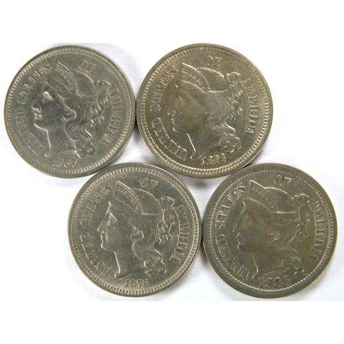 1867, 1868 and 1873 Closed 3, all AU. the 1867 lightly cleaned. Plus 1888 EF. Total four pieces